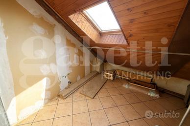 L'alloggio si compone di soggiorno, cucina abitabile, due camere da letto, un servizio e due balconi. Una scala interna conduce al piano sottotetto mansardato, dove trovano spazio un ulteriore soggiorno, una camera ed un bagno.
