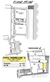 posto al primo e ultimo piano con balcone di 7 mq, composto da soggiorno con angolo cottura, disimpegno, camera matrimoniale e bagno.