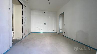bilocale di 50 mq al piano terra, con porzione di area esterna esclusiva di 11 mq sfruttabile come balcone, composto internamente da soggiorno con angolo cottura, disimpegno arredabile con armadio a muro, camera matrimoniale e bagno.