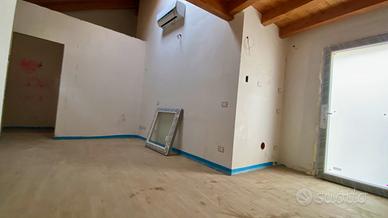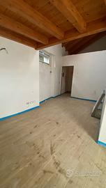 monolocale di 35 mq al primo e ultimo piano, tutto travi a vista, con soppalco di 14 mq, composto da un locale open space con cottura e letto, disimpegno e bagno.