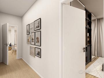 inserito in signorile contesto di recente costruzione caratterizzato da facciate di mattoni a vista, ampi spazi verdi circostanti, collocato in una posizione silenziosa e servito da un ampio parcheggio.