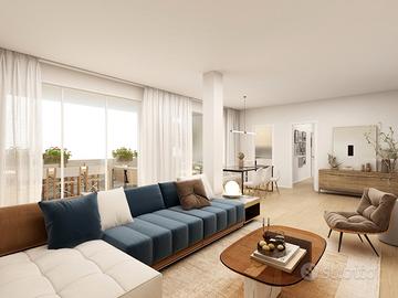 Quadrilocale posto al quarto e ultimo piano, luminoso, così composto: ampio soggiorno, cucina abitabile, tre camere da letto, due bagni ed un ampio terrazzo vivibile.