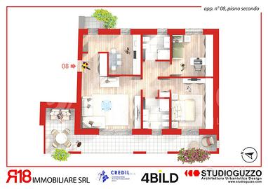 Appartamento 08 Trilocale al Piano secondo di un edificio di nuova costruzione in zona centrale e ben servita progettato con tecnologie di ultima generazione composto da ingresso, ampio soggiorno, cucina abitabile, 2 camere da letto, 1 bagno finestrato, 2 balconi oltre cantina. Possibilità box a partire da 28.000,00€ e/o posti auto a 13.000,00€