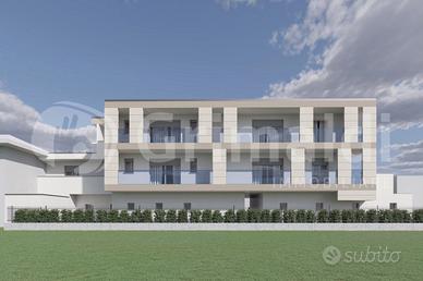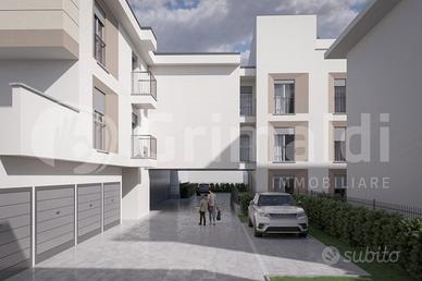 Edificio di nuova costruzione di tre piani. Appartamenti di varie tipologie con giardino o balcone con posti auto e box varie dimensioni