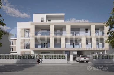 Edificio di nuova costruzione di tre piani. Appartamenti di varie tipologie con giardino o balcone con posti auto e box varie dimensioni
