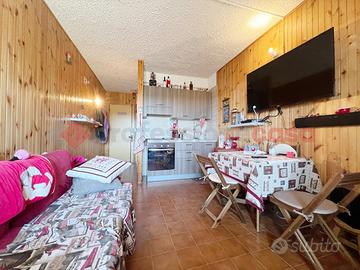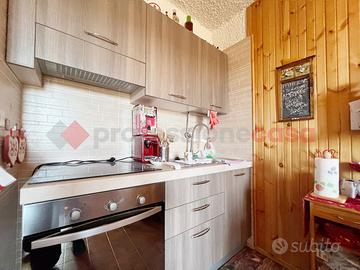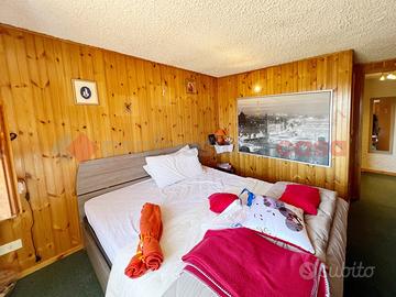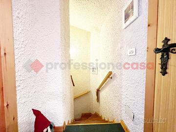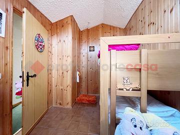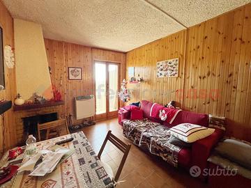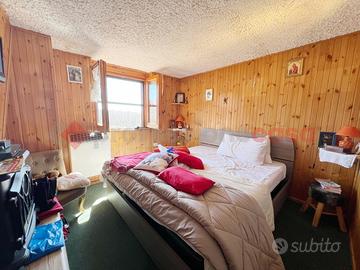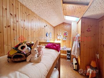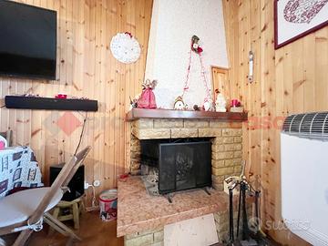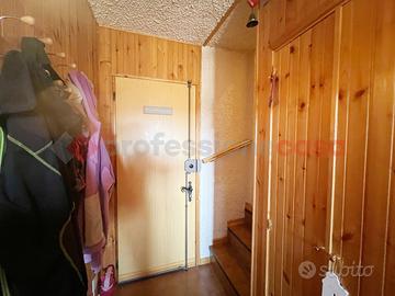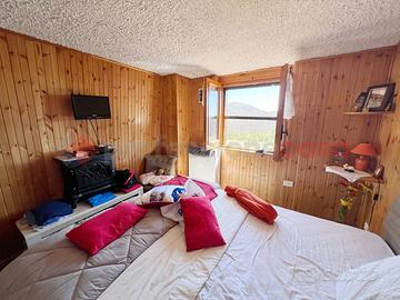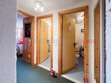 L'appartamento si sviluppa su due livelli, garantendo spazi ben distribuiti e una vivibilità ottimale. Al primo livello, troviamo una luminosa zona living con un suggestivo camino, ideale per rilassarsi e godersi le serate in compagnia. Da qui si accede al balcone, che offre una vista mozzafiato sulle montagne circostanti, regalando momenti di assoluto relax e contemplazione.