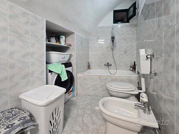 Proseguendo una comoda camera da letto e un bagno finestrato completo di sanitari, lavabo e vasca da bagno.