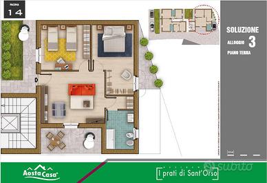 In vendita a Cogne, proponiamo un appartamento di nuova costruzione, posto al piano terra di un elegante complesso residenziale di fronte ai prati di Sant'Orso.