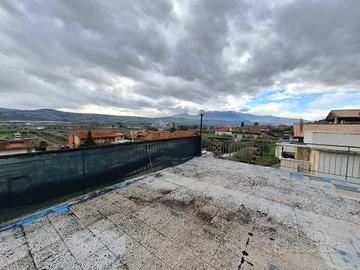L'unità è composta da ingresso su disimpegno, ampio soggiorno, cucina abitabile con camino, due camere da letto, una matrimoniale ed una singola, un bagno con finestra e box doccia, un unico ampio terrazzo, lato sud di 40 mq, con vista panoramica sui monti.
