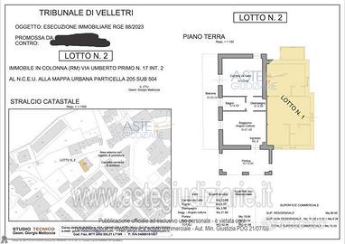Il prezzo del bene messo in vendita è pari a 72000,00 Euro. Vendita all'asta Senza incanto, con gara telematica asincrona - LOTTO 2: Piena proprietà di appartamento sito in Colonna (RM) - Via Umberto Primo n. 17 - Int. 2, piano Terra. Quota di proprietà di 1/4 pro indiviso del terreno circostante l'immobile, qualità Frutteto. Prezzo base € 72.000,00 (offerta minima € 54.000,00). Data inizio operazioni di vendita: 17/06/2026 ore 09:00. Giudice Dott. Anna Luisa Di Serafino. Professionista delegato alla vendita Avv. Valentina Carafa. Custode Giudiziario Avv. Valentina Carafa - Email "valentinacarafa@libero.it"; Tel. Rif. Tribunale di Velletri - Espropriazione immobiliare (cartabia) n. 88/2023. ATTENZIONE: Il numero dei bagni è puramente indicativo perché non specificato nella documentazione ufficiale. L'indice di prestazione energetica è puramente indicativo perché non specificato nella documentazione ufficiale. IMPORTANTE: I documenti ufficiali della vendita (avviso di vendita, ordinanza di vendita, perizia di stima ed eventuali altri allegati), ogni ulteriore informazione sulle modalità di partecipazione all'asta e di visita del bene in vendita sono consultabili sui siti web "www.astegiudiziarie.it", "www.astetelematiche.it" e "www.reteaste.it" (inserendo nei rispettivi motori di ricerca il codice asta 4333514). La vendita presso il Tribunale non prevede alcun costo a carico dell'acquirente se non le imposte di registro, ipotecarie e catastali ed ove nominato la parte di compenso del delegato posto a suo carico dalla Legge per il trasferimento della proprietà. Questo è l'unico annuncio autorizzato dal Tribunale su questo portale. Il Tribunale non ha conferito alcun incarico a intermediari o agenzie immobiliari per la pubblicità giudiziaria e l'assistenza alla partecipazione all'asta. I professionisti incaricati dal Tribunale (custode, delegato, curatore) sono a disposizione per Legge per fornire tutte le informaz
