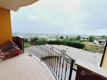 Luminoso appartamento, disposto su due livelli, al piano terra rialzato troviamo un quadrilocale di 104 mq, servito da ascensore, con tre balconi per totali 20 mq, vista mare monti, esposizione SUD/OVEST.