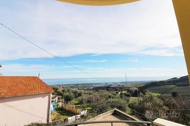Appartamento 65 mq, primo piano. Ingresso su ampio soggiorno - pranzo con angolo cottura a vista, due camere da letto di cui una matrimoniale ed una singola, un bagno con doccia ad areazione forzata, piccolo sgabuzzino con allacci, Corte esterna esclusiva di mq 6 e terrazzo abitabile vista mare 19 mq. Esposizione nord - est - sud. Completa la proprietà un garage al piano interrato di 23 mq.