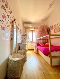 Appartamento ristrutturato completamente arredato, 3 camere, 2 bagni, posto auto Luminoso e silenzioso appartamento di 110 mq completamente ristrutturato, posto al secondo piano di un piccolo condominio in zona semicentrale, ben collegata e a pochi minuti dal centro, A pochi metri supermercato, centro servizi e tabaccaio. L'immobile gode di affacci aperti e panoramici su tutti i lati ed è composto da zona living di 45mq, cucina grande e abitabile, zona servizi con lavanderia, 3 camere da letto, 2 bagni e balconi su tutti i lati. Parquet in rovere naturale in tutti gli ambienti, infissi in legno con doppio vetro e zanzariere, condizionatori installati nel 2025 in tutti gli ambienti. Appartamento completo di arredi e accessori, dotato di antifurto perimetrale e interno, TV Samsung da 70" in salone e 50" in camera, letto matrimoniale 200x200, fibra ottica, lavatrice, asciugatrice, lavastoviglie, microonde e frigorifero No Frost, cucina completa attrezzata. Completa la proprietà il posto auto. Soluzione pronta da abitare, non necessita di nulla, ideale per chi cerca comfort, tranquillità e una casa già perfettamente attrezzata. Canone incluso di spese condominiali. No animali domestici. Richieste referenze reddituali. Disponibile dal primo di maggio.