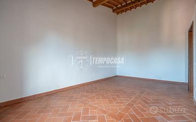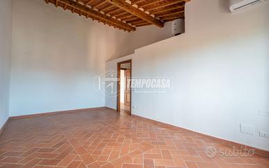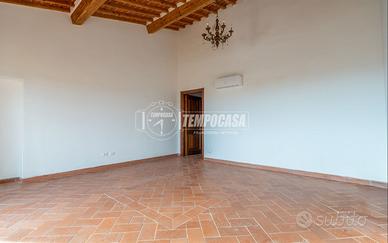accediamo all'appartamento al primo piano da una scala esterna privata, subito dopo troviamo l'ampio soggiorno con cucina a vista, un disimpegno per la zona notte, il bagno finestrato e le due grandi camere matrimoniali;