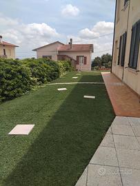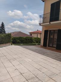 Vendesi appartamento 130 mq su 2 piani, 3 camere 2 bagni con disimpegno e terrazzo più soffitta con caldaia al piano superiore, piano inferiore grande living con bagno e locale lavanderia dispensa, all'esterno 60 mq giardino pavimentato e 170 mq con terreno il tutto recintato, casa praticamente singola in quanto staccata dall'altro immobile, completa il tutto allarme su tutta la casa e 2 box singoli piano strada con accesso principale elettrico