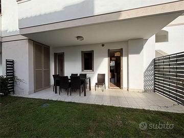 Un moderno villaggio dotato di piscina con ponte panoramico, solarium, idromassaggio, ampio giardino comune e copertura wi-fi free, ubicato a soli 600 mt. dal mare e a pochi passi dallo stabilimento termale e dal principale viale dello shopping della località.