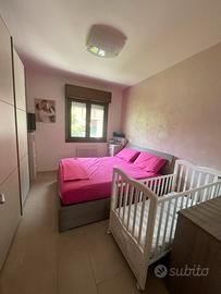L'appartamento è in ottimo stato anno 2010 in classe energetica B, situata al piano terra con 2 giardini privati. È composto da soggiorno con cucina, due camere da letto, un bagno e 2 ripostigli. Il prezzo è di 250000 ,compreso di garage.
