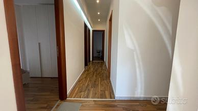 L'appartamento è composto da un ampio ambiente living con cucina annessa, spazioso e luminoso, che si affaccia su un meraviglioso terrazzo, perfetto per godere di momenti di relax all'aperto o per organizzare piacevoli serate in compagnia. La zona notte comprende quattro camere, tutte ben rifinite e arredate con cura: una di esse dispone di bagno privato in camera, mentre altri tre bagni completano la dotazione dell'immobile, assicurando massimo comfort e funzionalità anche per più occupanti.