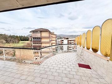 La soluzione della superficie catastale di mq. 149 e netti interni al netto delle tramezzature di mq. 121 ca, posto al piano quinto, ultimo come abitazione ma con piano sottotetto al piano sesto che garantisce la quiete assoluta e comunque va ad isolare l'immobile dalla copertura. La soluzione si compone da un ampio vano ingresso, salotto con affaccio principale e con piccolo terrazzino ed ampia balconata su tre lati di mq. 50 ca, disimpegno che conduce alla zona notte composta da due enormi camere da letto matrimoniali tutte con balcone, ripostiglio, cucina abitabile con terrazzino comunicante sempre con l'ampia balconata, due bagni il primo ampio e con doccia ed il secondo di servizio;