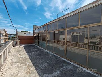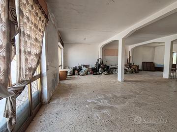 Salento, Salve, centrale a pochi passi da Via Roma e dal Municipio, immobile composto da ampio locale garage/magazzino (possibile locale commerciale-artigianale) di circa 180 mq con doppie vetrine, giardino retrostante, cantina e cortile con accesso da strada chiusa posta alle spalle del fabbricato; appartamento posto al 1' piano con ingresso da p.t. composto da 6 vani ed accessori con ampio terrazzo a livello, balcone retrostante ed area solare. Ottimo uso investimento.