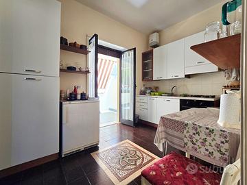 La soluzione, presenta due ingressi, il primo condominiale, il secondo indipendente. Accedendo dall'ingresso privato, si viene subito accolti da un ampio terrazzo a livello che circonda tutta la casa, uno spazio ideale per cene estive, colazioni all'aperto o semplicemente per rilassarsi al sole. Una parte di questo spazio ospita anche una zona verde con giardino e vegetazione, che dona un tocco naturale all'ambiente.