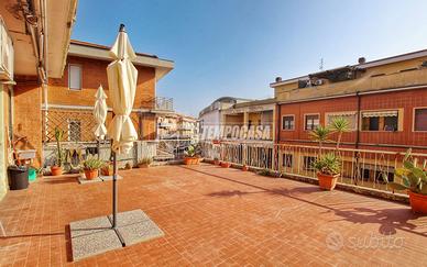 * Zona giorno: ingresso su un luminoso soggiorno con accesso a un grande terrazzo privato di circa 70 mq, ideale per cene all'aperto e momenti di relax. La cucina è separata e si affaccia anch'essa sul terrazzo, creando un collegamento funzionale tra interno ed esterno.