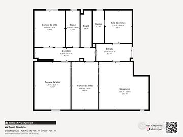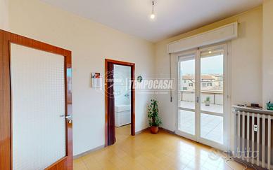 L'immobile è composto da Ingresso (6,7 M²); Sala da Pranzo (9,6 M²) e Tinello (3,9 M²) con accesso ad un terrazzo grande (50 M²); Soggiorno (25,8 M²) molto luminoso con accesso anch'esso ad un terrazzo grande (50 M²) che affaccia sul davanti dell'edificio; Disimpegno Notte (6,1 M²); Bagno finestrato (4,5 M²); Bagno finestrato (5,6 M²); Camera Matrimoniale (14,2 M²);