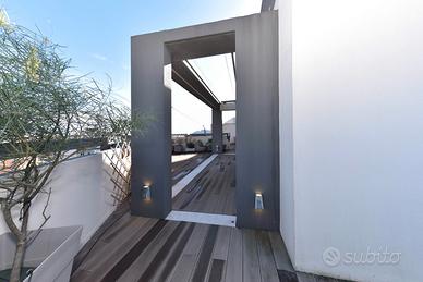 Una terrazza a livello di 109 mq, dalla quale è possibile godere di un'impareggiabile vista mare, ospita due loggiati, con copertura automatizzata, un vano tecnico e una scala per accedere al lastrico solare, ulteriore punto privilegiato dal quale ammirare il panorama.