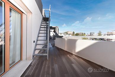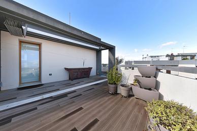 Nel ricercato quartiere di Bonaria eleganza, modernità e funzionalità si uniscono per creare un'esclusiva e prestigiosa dimora, che offre ambienti accoglienti e ragionati con un panorama unico sulla città e sul mare: un appartamento con attico sovrastante inseriti all'interno di un signorile contesto condominiale dotato di ascensore. Posizionato al sesto e ultimo piano del palazzo e sviluppato su una superficie di 162 mq, l'appartamento custodisce un raffinato salone doppio, una cucina abitabile, un disimpegno, una camera da letto matrimoniale con armadio su misura e bagno padronale, una camera da letto doppia, un bagno principale, un ripostiglio e un'ulteriore camera con bagno completo e zona lavanderia. Dal salone raggiungiamo un balcone di 16 mq, che offre una splendida vista mare; mentre dalla cucina accediamo ad una veranda di servizio orientata verso il centro storico della città. Raggiungibile sia dall'interno dell'appartamento sia dal vano scale condominiale, al settimo piano sorge l'attico: un'ulteriore spazio abitativo di 47 mq. Al suo interno troviamo una zona giorno con angolo cottura a vista, un disimpegno con guardaroba a scomparsa, una camera da letto con cabina armadio e un bagno. Una terrazza di 109 mq circonda l'attico su tre lati offrendo un panorama incantevole. Oltre a due comodi loggiati, entrambi con copertura automatizzata, nella terrazza sono presenti un vano tecnico e la scala per accedere al lastrico solare, punto dal quale la vista si perde all'orizzonte. Finemente ristrutturata, questa dimora è dotata di tutto ciò che è necessario per garantire ai suoi abitanti il giusto confort e un'ottima efficienza: tapparelle automatizzate, un doppio impianto di riscaldamento autonomo, la predisposizione per l'antifurto e per l'installazione di un ascensore interno a collegare l'appartamento all'attico, un impianto fotovoltaico e pannelli solari. La proprietà si completa con una cantina di 22 mq e un posto auto coperto. Classe in def.