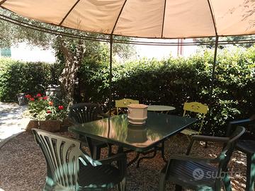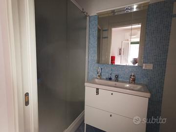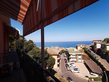 Ampio Trilocale di grande fascino con Balconata con splendida Vista Mare frontale e Giardino di circa 300 mq. Internamente è ristrutturato con finiture di pregio ed arredato; si compone di ingresso con armadiature a muro, grande Soggiorno living con Cucina a vista che affacciano sulla Balconata Vista Mare frontale, Camera matrimoniale, seconda comoda Camera e Bagno Finestrato. Splendido e curatissimo Giardino di proprietà con Vista Mare (possibilità di fare una grande piscina a sfioro). È situato in una piccola Palazzina perfettamente in ordine in primissima collina. Termoautonomo e Climatizzato. NO condominio, nessuna spesa. Splendida