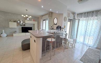 Nei pressi nuovo Parco Commerciale " CALCATORE " in Via MARCIA; Appartamento angolare su 2 lati al 1°piano di 105 mq e composto da: ampio soggiorno, cucina semi - abitabile a vista, balcone coperto vivibile nella zona giorno ( con accesso sia dal soggiorno che dalla cucina ), corridoio / disimpegno, 3 camere da letto e 2 bagni + ampio Box Auto al piano 1 / S e Posto Auto sito nel cortile condominiale al piano strada chiuso con cancello automatico. Doppia esposizione con affaccio libero ed arioso. Stabile rifinito in cortina esterna. Ottimo Stato ! - Portone d'ingresso blindato, infissi in alluminio doppio vetro e zanzariere, tende da sole, porte a scrigno, climatizzata in tutte le stanze con nuovo sistema di canalizzazione, Termo - Autonomo. - Classe: G