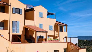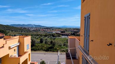 Castiglione della Pescaia, Vendesi, in esclusiva, un grazioso appartamento bilocale di recente costruzione al secondo ed ultimo piano di un piccolo condominio. L'appartamento è così composto: ingresso, soggiorno con angolo cottura arredato su misura, da cui si accede a una terrazza coperta, pranzabile, dotata di tenda da sole; camera matrimoniale con parziale vista mare, un bagno completo con box doccia in cristallo. Climatizzatori inverter caldo-freddo sia nel soggiorno che nella camera da letto. Infissi in PVC con apertura a "vasistas" e doppi vetri, dotati di zanzariere. Al piano strada, un posto auto coperto esclusivo di 17 mq, catastali, chiuso con cancello automatico. Si vende completamente arredato. Libero da vincoli e persone. Per informazioni ed eventuali visite in loco, contattare sig. Paolo al