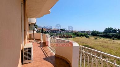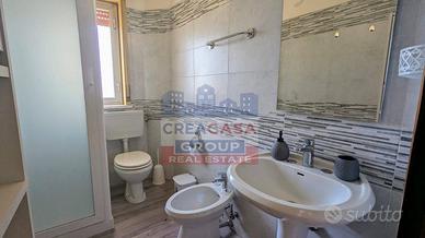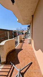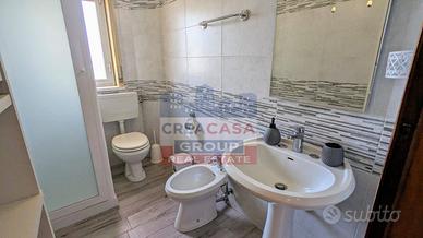 L'appartamento ha una superficie di 40 mq catastali distribuito come segue: ingresso su disimpegno, dove vi è lo spazio necessario per un armadio a muro, bagno completo di bidet e doccia, unico ambiente con angolo cottura e zona living che affaccia sul balcone di 16 mq.,
