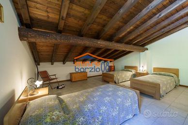 Al piano secondo ingresso, soggiorno con camino e terrazzo panoramico, cucina a vista con balcone, camera matrimoniale, bagno finestrato con vasca; al piano mansarda troviamo 2 ampie camere, bagno con vasca finestrato.