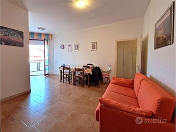 L'immobile della superficie complessiva di circa 78 mq vanta balconi abitabili e panoramici con VISTA MARE, è ubicato al piano secondo senza ascensore e risulta diviso come segue: ingresso su luminosa zona living con cucina separata, disimpegno notte con camera matrimoniale, una camera singola, ripostiglio e bagno pratico con box doccia.
