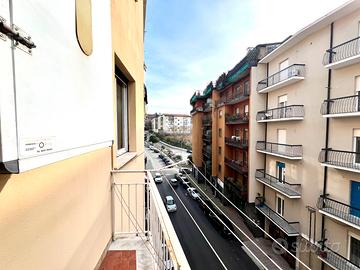 AVELLINO - Nella centralissima via Enrico Capozzi, in prossimità di tutti i servizi, proponiamo in vendita al piano terzo con ascensore luminoso appartamento di 115,00 mq circa costituito da un ingresso in doppio salone di rappresentanza, cucina, ampio bagno, 2 camere da letto matrimoniali e cantina al piano seminterrato, triple balconate con esposizione a sud su piazzetta Perna, doppi infissi esterni in alluminio, riscaldamento autonomo, spese condominiali euro 41,00 circa mensili, APE G.