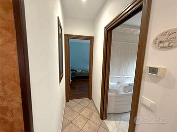L'immobile si presenta in ottime condizioni interne. La composizione interna prevede una zona living ampia e luminosa con caminetto, a seguire due ampie camere da letto, doppi servizi, uno con vasca e l'altro con doccia, entrambi finestrati.