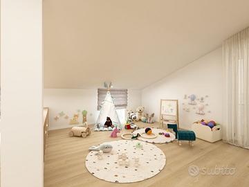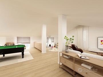 La casa, servita da un balcone, dispone di un sottotetto anch'esso di 135 mq, raggiungibile tramite una scala e dotato di balcone e punto acqua. Uno spazio eventualmente trasformabile in ampia mansarda abitabile. Gli infissi dell'appartamento sono già nuovi, in PVC e con doppi vetri. A completare il tutto, infine, troviamo un altro dei plus della proprietà: la corte esclusiva, uno spazio aggiuntivo molto funzionale che si estende per 360 mq.