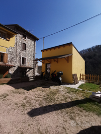 Ingresso a piano terra direttamente nel soggiorno con cucina a vista e camino funzionante. Locale dispensa con lavandino a doppia vasca in ceramica. Ai piani superiori due camere matrimoniali, bagno con doccia, antibagno con lavatrice carica dall'alto, un grande terrazzo piastrellato con vista sulla valle.