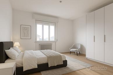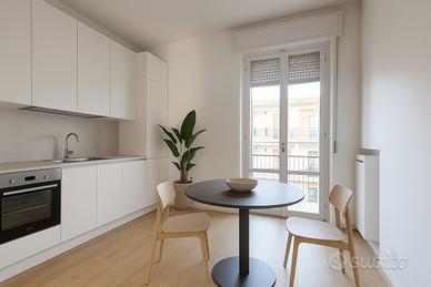 Ubicato al secondo dei tre piani di una palazzina, l'immobile offre un'eccellente distribuzione degli spazi interni con ambienti luminosi e molto vivibili. La zona giorno consta di un soggiorno e di una cucina abitabile, entrambi serviti da un balcone, mentre il reparto notte ospita due camere da letto (una matrimoniale e una singola). La casa è dotata di uno studio e di doppi servizi igienici, entrambi finestrati.