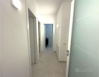 La soluzione è composta da: ampia zona living con cucina a vista e accesso diretto al balcone, disimpegno notte, camera matrimoniale e camera singola entrambe con balcone, bagno padronale e bagno di servizio/lavanderia.