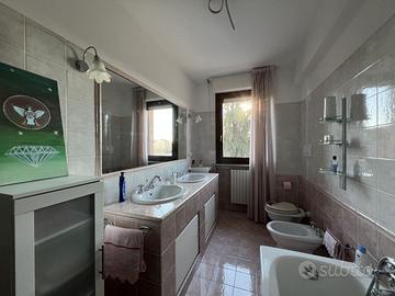 I servizi igienici della casa sono doppi: oltre al bagno principale - finestrato e dotato di doppio lavabo e vasca - è presente, infatti, un bagno di servizio cieco e munito di doccia. Il reparto notte ospita, infine, due spaziose camere da letto: una camera matrimoniale e una camera singola.