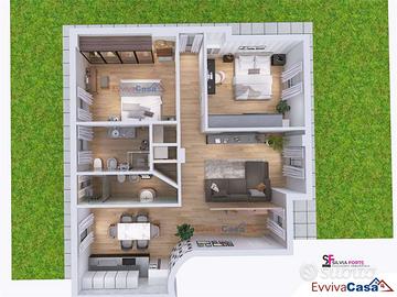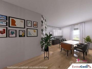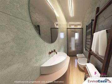 Secondo il progetto attuale, è possibile realizzare un ampio soggiorno con cucina a vista, due camere da letto (di cui una matrimoniale con bagno privato), un secondo bagno, lavanderia e guardaroba. Ma nulla è definitivo: ogni ambiente può essere ripensato e modellato in base ai tuoi sogni.