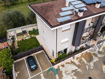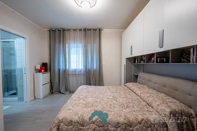 L'immobile gode delle seguenti caratteristiche: pavimentazione in gress, porta blindata, infissi in legno bianco doppio vetro e taglio termico, tapparelle in pvc con apertura elettrica, zanzariere, grate di sicurezza, tende da sole, caldaia a condensazione, climatizzatori caldo/freddo, videocitofono, cancello elettrico condominiale, ascensore, pannello solare termico, impianto fotovoltaico per i consumi condominiali.