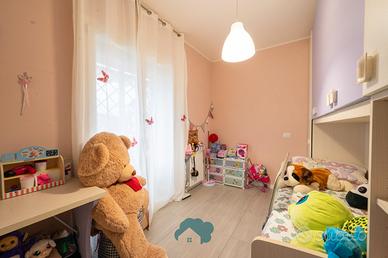 L'appartamento è così suddiviso: salone con angolo cottura con uscita sul portico, disimpegno, camera da letto matrimoniale con bagno finestrato dotato di doccia, cameretta con uscita sul portico e secondo bagno finestrato e con vasca.
