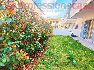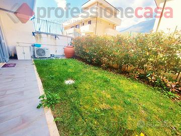 In zon centrale, vicino ai servizi, proponiamo in vendita esclusiva appartamento in piccolo contesto di recente costruzione, posto al piano terra con giardino e terrazzo. L'immobile è composto da: ingresso con soggiorno, cucina, disimpegno,camera matrimoniale, cameretta e doppi servizi ed è dotato di cappotto termico, infissi in triplo vetro con persiane blindate, porte a scrigno e condizionatori sia nella zona giorno che nella zona notte. L'immobile viene venduto comprensivo di mobilio.