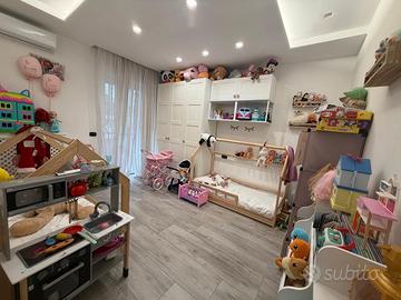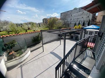 Proponiamo in vendita sito in Giugliano in Campania, in Via Scarfoglio, nelle immediate vicinanze di Via Scarfoglio e nei pressi della metropolitana, un elegante appartamento completamente ristrutturato, situato al piano rialzato di un piccolo e tranquillo condominio all'interno di un contesto residenziale riservato. L'immobile ha una superficie interna di circa 85 mq ed è stato recentemente ristrutturato con ottime rifiniture e materiali di qualità, offrendo ambienti moderni, funzionali e luminosi. La soluzione è composta da: -Ingresso in ampio salone con cucina a vista, uno spazio accogliente e ben organizzato che si affaccia direttamente su un giardino privato di circa 50 mq, ideale per momenti di relax all'aperto, per pranzi e cene in famiglia o per chi possiede animali domestici; La zona notte è composta da: -Camera da letto matrimoniale con bagno privato e cabina armadio, pensata per garantire comfort e privacy, -cameretta con ampia balconata, luminosa e arieggiata, completa la proprietà un secondo bagno, rifinito con materiali moderni e ottima qualità. L'appartamento si trova in un contesto tranquillo e ben abitato, in una zona strategica vicina a servizi, scuole, attività commerciali e collegamenti principali. L'immobile non dispone di posto auto, ma è possibile parcheggiare comodamente nel viale antistante. Soluzione ideale per chi cerca una casa già pronta da abitare, con spazi esterni privati. Il prezzo di vendita richiesto è di ? 190.000,00 leggermente trattabile.