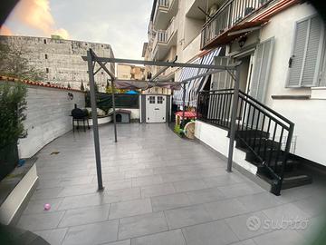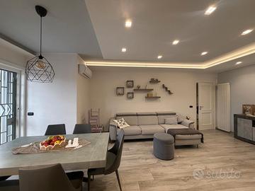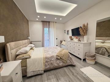 Proponiamo in vendita sito in Giugliano in Campania, in Via Scarfoglio, nelle immediate vicinanze di Via Scarfoglio e nei pressi della metropolitana, un elegante appartamento completamente ristrutturato, situato al piano rialzato di un piccolo e tranquillo condominio all'interno di un contesto residenziale riservato. L'immobile ha una superficie interna di circa 85 mq ed è stato recentemente ristrutturato con ottime rifiniture e materiali di qualità, offrendo ambienti moderni, funzionali e luminosi. La soluzione è composta da: -Ingresso in ampio salone con cucina a vista, uno spazio accogliente e ben organizzato che si affaccia direttamente su un giardino privato di circa 50 mq, ideale per momenti di relax all'aperto, per pranzi e cene in famiglia o per chi possiede animali domestici; La zona notte è composta da: -Camera da letto matrimoniale con bagno privato e cabina armadio, pensata per garantire comfort e privacy, -cameretta con ampia balconata, luminosa e arieggiata, completa la proprietà un secondo bagno, rifinito con materiali moderni e ottima qualità. L'appartamento si trova in un contesto tranquillo e ben abitato, in una zona strategica vicina a servizi, scuole, attività commerciali e collegamenti principali. L'immobile non dispone di posto auto, ma è possibile parcheggiare comodamente nel viale antistante. Soluzione ideale per chi cerca una casa già pronta da abitare, con spazi esterni privati. Il prezzo di vendita richiesto è di ? 190.000,00 leggermente trattabile.
