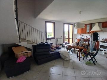 crevalcore in zona sammartini proponiamo in affitto appartamento con piccolo giardino privato, ingresso al primo piano con ampia sala con angolo cottura (arredato) e bagno, con scala interna si accede al secondo piano dove troviamo 2 camere e altro bagno. Palazzina di recente edificazione, riscaldamento autonomo. Richiesta la firma di 2 persone con contratto a tempo indeterminato