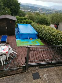 Perugia - Santa Petronilla - a pochi chilometri dal centro storico della città, in casa trifamiliare, proponiamo in vendita un appartamento su due livelli con doppio ingresso indipendente, così organizzato: piano sotto strada composto da: soggiorno con camino e cucina abitabile; al piano terra vi è la zona notte con tre camere e due bagni finestrati. Completa la proprietà un giardino di ca. 100 mq.